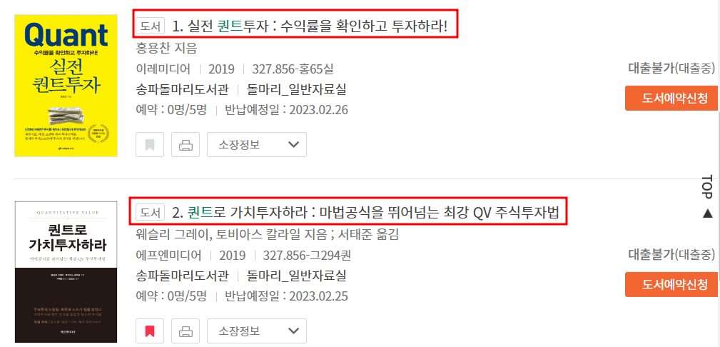 퀀트투자를 공부하기 우해서 동네 도서관에서 관련 서적을 찾아보니